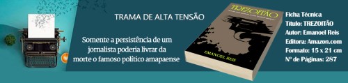O romance intitulado “Trezoitão”, de autoria do jornalista Emanoel Reis, está à venda na Loja Kindle. A história inicia com o assassinato de um deputado estadual, conhecido defensor de pequenos agricultores no interior do Pará. O autor do crime, codinome “Trezoitão”, é um matador de aluguel financiado por consórcio montado nos escaninhos do governo estadual, comandado pelo próprio governador. Ele é muito ligado ao latifúndio (pecuaristas, madeireiros, carvoeiros, grileiros). Toda a trama é ambientada nos Estados do Pará e Amapá. Quer saber mais sobre esta obra?