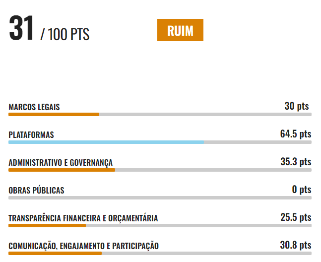 Com apenas 31/100 pontos e ocupando a última posição do ranking entre as capitais brasileiras analisadas, a capital do Amapá foi classificada com uma pontuação considerada “Ruim” e foi insuficiente em indicadores importantes para o controle da corrupção e a promoção da integridade.