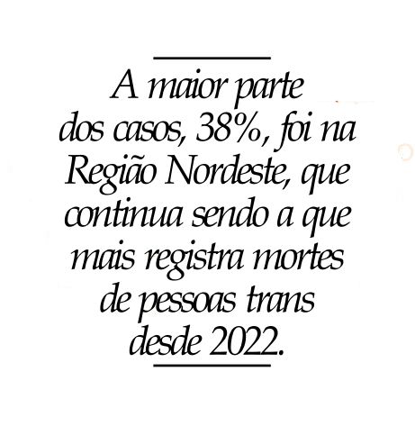 “A queda no número de mortes de pessoas trans em relação a 2023 é um pequeno alívio, mas não podemos ignorar que elas ainda acontecem. Isso reflete como o Brasil está em um processo lento e desigual de mudança. Apesar de avanços em debates públicos e de maior visibilidade, a violência e o preconceito ainda são uma realidade para muitas pessoas trans. Essa trajetória mostra que, embora existam sinais de progresso, a luta está longe de acabar”, diz a secretária adjunta de Comunicação da Rede Trans Brasil, Isabella Santorinne.