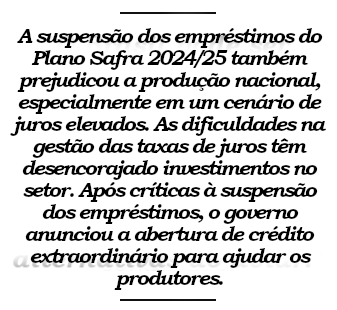 Além disso, a possibilidade de taxar ou criar cotas de exportação de alimentos está sendo discutida, o que poderia afetar a produção a longo prazo. Embora o governo tenha evitado intervenções, alguns membros ainda defendem essa ideia. A imposição de impostos ou cotas pode aumentar a disponibilidade de alimentos temporariamente, mas reduziria a rentabilidade dos produtores a longo prazo, resultando em inflação. Isso aconteceu na Argentina, onde a criação de impostos de exportação levou a uma redução na produção de grãos.
