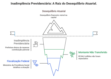 A gravidade da situação foi detalhada em uma fiscalização rigorosa do Ministério da Previdência Social. O órgão federal, ao analisar as contas do município, identificou um buraco cavado por meses de inadimplência. Entre julho de 2023 e dezembro de 2024, a prefeitura deixou de repassar integralmente a contribuição previdenciária patronal — a parcela que cabe ao ente público para garantir o benefício futuro de seus funcionários. O montante não transferido chega a R$ 84,2 milhões. É uma cifra que, por si só, explica grande parte do desequilíbrio atuarial da capital.