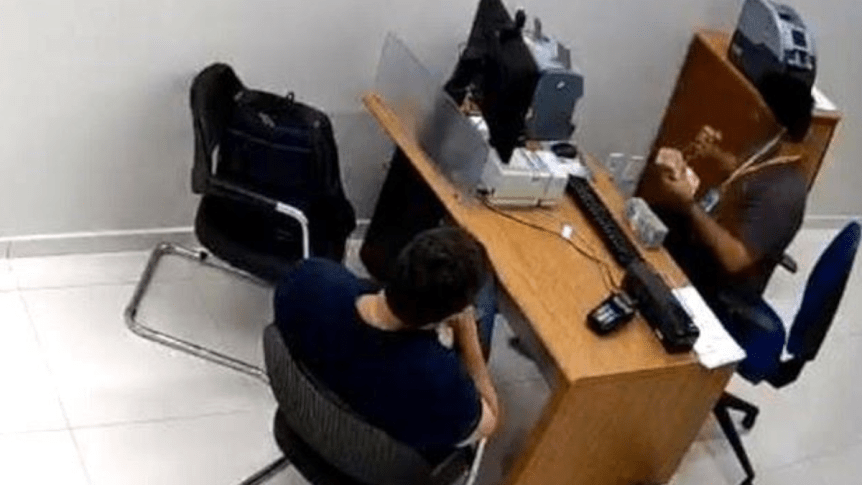Em agência bancária de Macapá, o empresário Rodrigo Moreira, da Santa Rita Engenharia, realiza uma das 42 retiradas em espécie identificadas pela Polícia Federal. Segundo o relatório da Operação Paroxismo, o dinheiro, que deveria financiar as obras do Hospital Geral Municipal, era sacado logo após os repasses da prefeitura e saía do circuito bancário sem deixar rastros de pagamentos a fornecedores