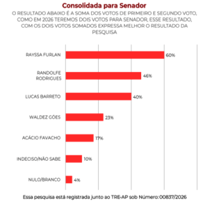 No cenário para o Senado, a força do “furlanismo” ainda demonstra fôlego, personificada em Rayssa Furlan. Ela lidera as intenções de primeiro e segundo voto com 60%, seguida pelo senador Randolfe Rodrigues, que aparece com 46%. O resultado indica que, apesar do abalo na imagem do cabeça do grupo, a rede de alianças e o carisma familiar ainda funcionam como um anteparo importante contra a erosão eleitoral imediata. No entanto, o alto índice de nulos e indecisos para o Senado sugere que o eleitor amapaense está processando as informações a conta-gotas, tratando cada fato novo da Polícia Federal como um capítulo de uma novela que ainda não tem data para o grand finale.