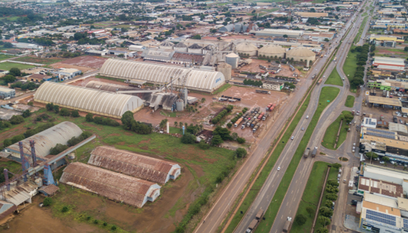 Dirigindo pela Perimetral Sudoeste, logo cruzamos com a mansão da família Daroit, uma das “pioneiras”, segundo o discurso oficial. Essa avenida é um dos dois pontos de acesso ao lado leste da cidade. Ao cruzar a rodovia, um outro mundo se abre. Galpões, silos, o pó do agronegócio, o barulho das indústrias, o frenesi dos caminhões.
