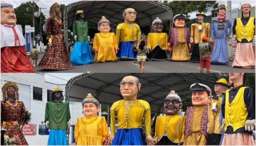 No epicentro dessa multidão, erguem-se figuras que desafiam a escala humana. Os bonecos gigantes, com seus três metros de altura, funcionam como tótens de uma mitologia local. Eles não são meras alegorias carnavalescas; são homenagens a personagens que costuraram a história social de Macapá.