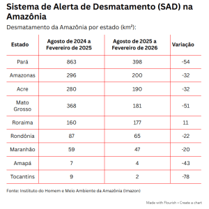 Portanto, o balanço de fevereiro serve como um termômetro para o restante do ano. O desafio agora é manter a curva descendente durante o “verão amazônico”, período de seca onde o acesso às áreas remotas fica facilitado e os índices de queimadas e derrubadas costumam disparar. Se o ritmo de preservação for mantido, 2026 poderá entrar para a história como o ano em que o Brasil finalmente reencontrou o caminho da sustentabilidade, provando que é possível proteger o patrimônio natural enquanto se combate o aquecimento global com ações concretas no chão da floresta.