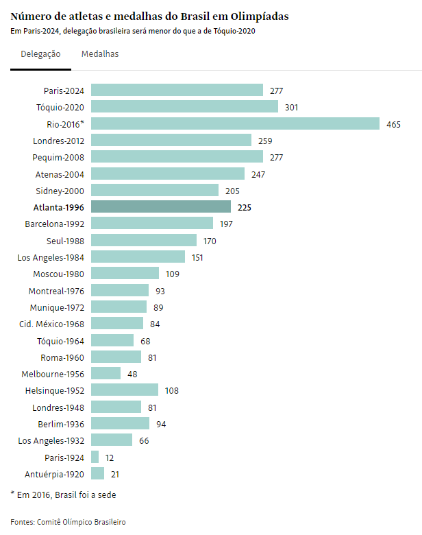 Em números absolutos, no entanto, a delegação deste ano é menor do que a de Tóquio-2020 (301) e que a do Rio de Janeiro-2016.