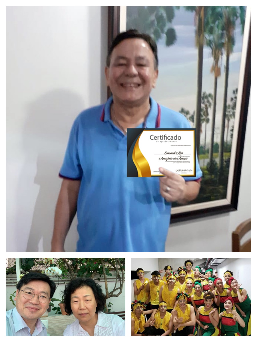 Editor de site de notícias do Amapá, jornalista Emanoel Reis, recebe tributo por divulgação de ações de organização religiosa da Coreia do Sul. Dirigentes da Missão Boa Notícia, Pastor Davi Lee e sua esposa Sara Lee com jovens participantes de eventos internacionais