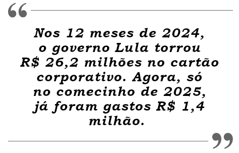 Após torrar R$ 26 milhões em 2024, governo Lula mantém ritmo de gastos nos cartões corporativos