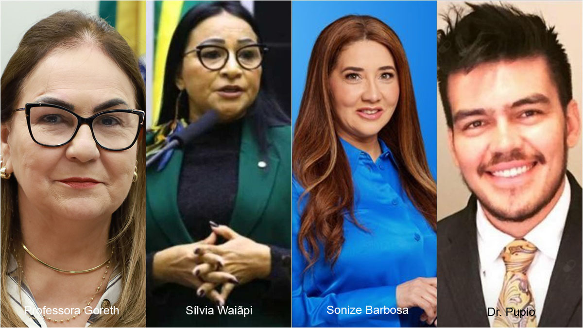 Sete deputados eleitos em 2022 correm o risco de perder os cargos – Sílvia Waiãpi (PL-AP), Sonize Barbosa (PL-AP), Professora Goreth (PDT-AP), Dr. Pupio (MDB-AP), Gilvan Máximo (Republicanos-DF), Lebrão (União-RO) e Lázaro Botelho (PP-TO).